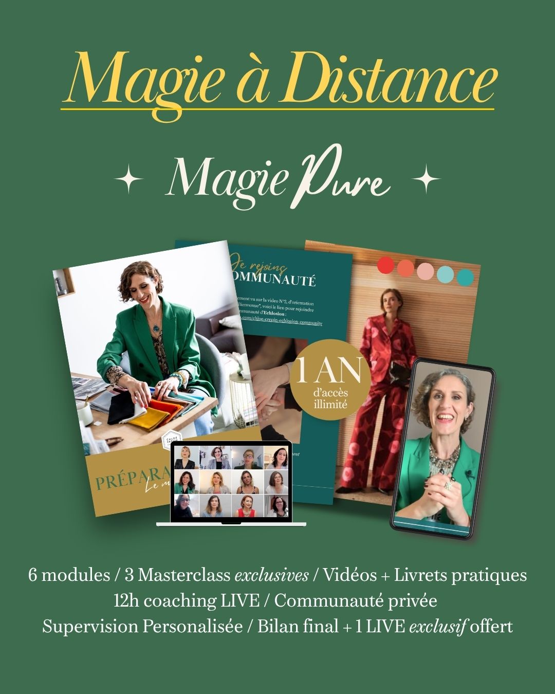 + Ma supervision au long de ces 3 mois de parcours d’Echlosion, MA MAGIE à portée de clic. (Et même 1 mois de bonus grâce à la trêve des fêtes ! youhouuuu...)